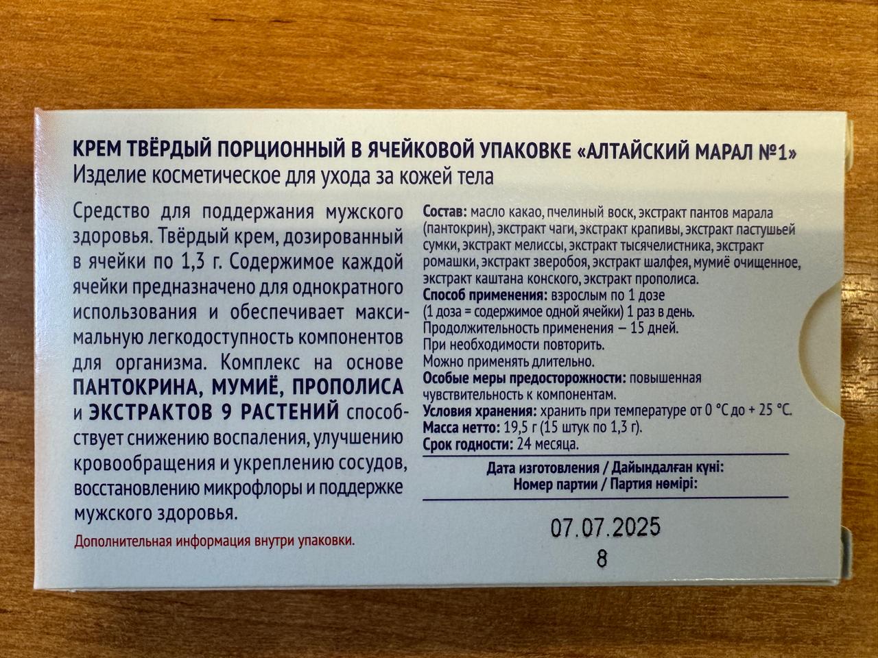 - Мумиё — оказывает выраженное противовоспалительное, противоотёчное и антибактериальное действие, значительно ускоряет регенеративные процессы в тканях.
