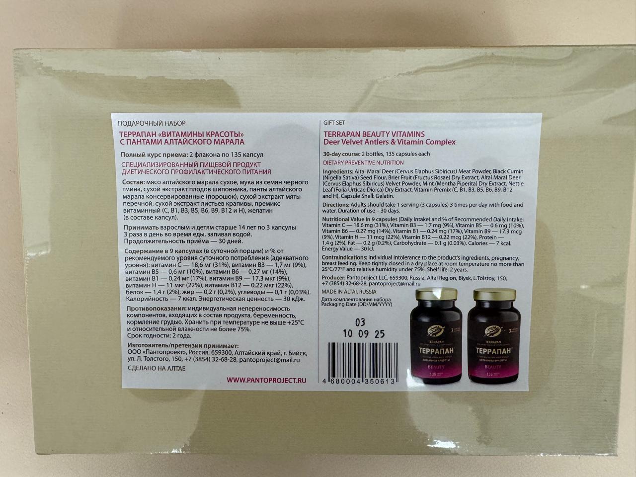 Подарочный набор «ТЕРРАПАН ВИТАМИНЫ КРАСОТЫ», мультивитаминный комплекс с пантами марала и чёрным тмином, 270 капсул.