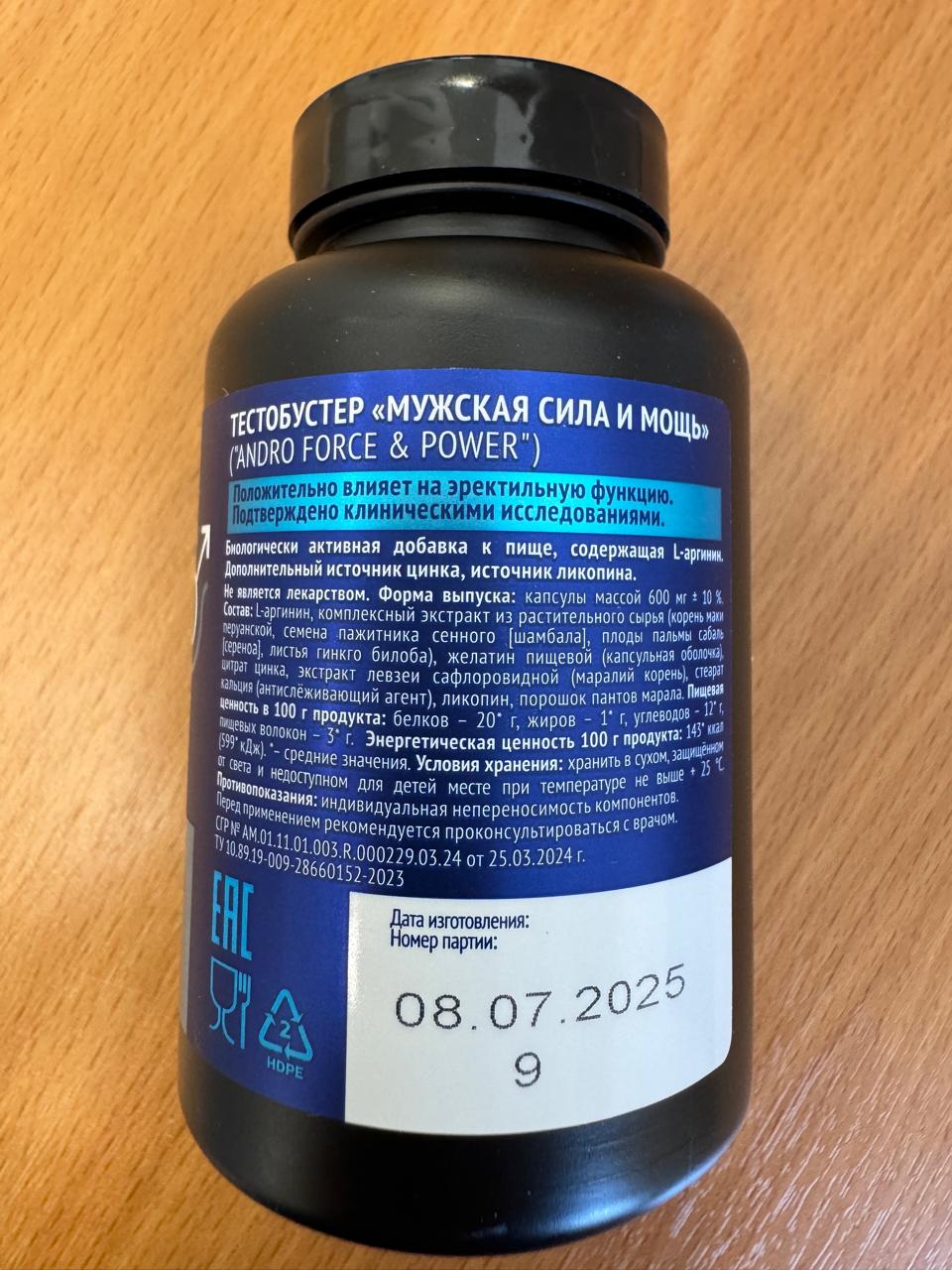 "ANDRO FORCE & POWER" (тестобустер "АНДРО МУЖСКАЯ СИЛА И МОЩЬ") — биологически активная добавка к пище, содержащая L-аргинин. Дополнительный источник цинка и ликопина. Содержит компоненты, способствующие нормализации гормонального фона мужчины, увеличению его силы, выносливости, сексуальной активности, репродуктивного здоровья и функционального состояния предстательной железы.